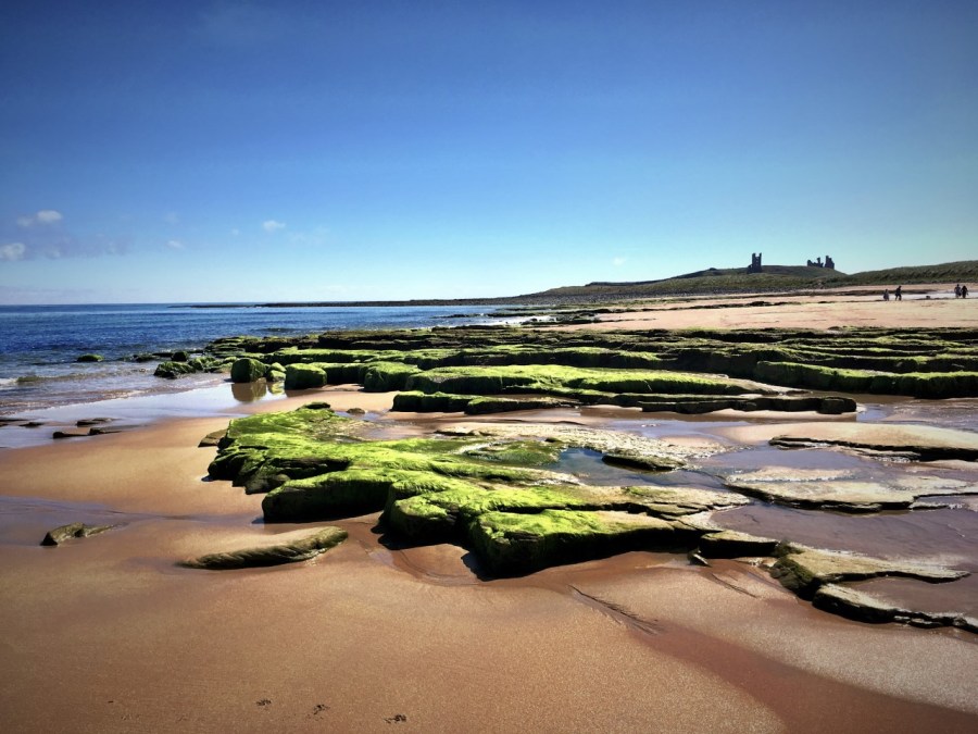 Beautiful beach close by at Embleton Bay overlooked by Dunstanburgh Castle,